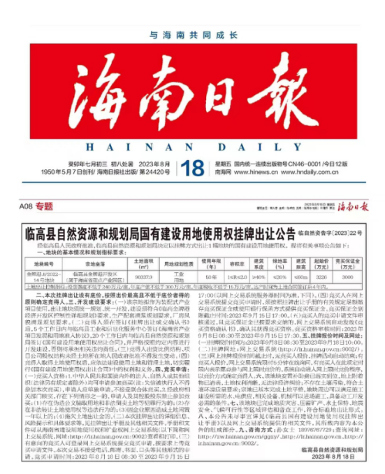 近日,海南金標綠能科技有限公司(以下簡稱“海南金標綠能”)在激烈的競拍中脫穎而出,成功拿下臨高縣自然資源和規(guī)劃局掛牌出讓的一塊建設用地使用權,標志著該公司位于臨高縣的綠色能源生產基地項目正式進入投建階段。