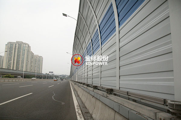 此處安裝聲屏障的目的,主要是防止快速路上的汽車噪聲影響周邊居民。聲屏障板高3米,采用金屬微孔聲屏障主要是隔聲效果更好,上部折彎設(shè)計(jì),防止噪聲泄露。