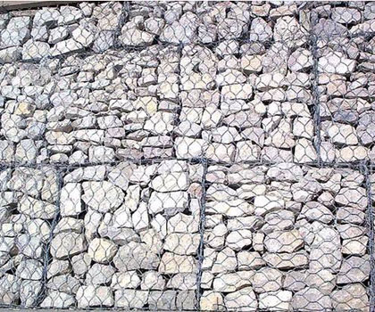 格賓擋墻是由網(wǎng)箱層疊堆砌的擋土建筑物,由間隔1米的隔板分成若干單元格,為了加強(qiáng)格賓網(wǎng)擋墻的結(jié)構(gòu)強(qiáng)度,所用邊端鋼絲直徑都要粗于網(wǎng)面鋼絲直徑。在網(wǎng)箱內(nèi)填充塊石,不僅能承受實(shí)料的重量,而且還經(jīng)得起雨水的沖刷,仍保持結(jié)構(gòu)的完整性。